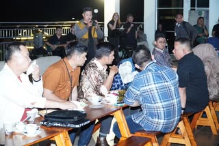 Wakil Menteri UMKM itu disuguhkan dengan berbagai kuliner khas Banjar sambil melihat keindahan Kota Seribu Sungai dari atas Menara Pandang. (prokom-bjm)